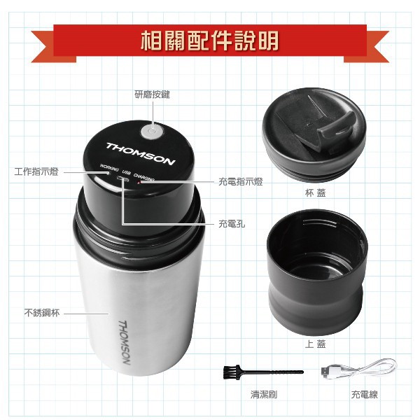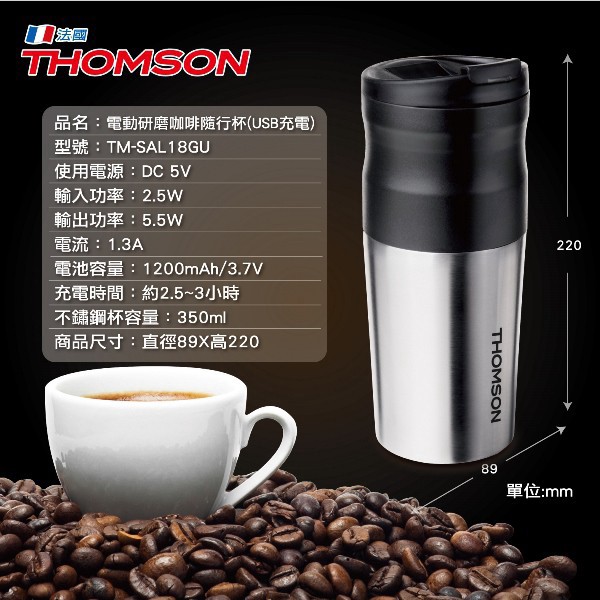 THOMSON 電動研磨咖啡隨行杯(USB充電) TM-SAL18GU 現貨 廠商直送