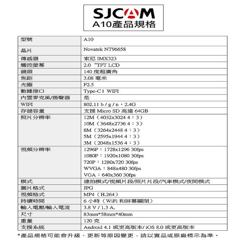 SJCAM A10 雷射定位監控密錄器/運動攝影機 SONY鏡頭 聯詠96658 警用外送員必備 現貨 蝦皮直送