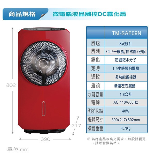THOMSON 微電腦液晶觸控DC霧化扇 TM-SAF09N 現貨 廠商直送