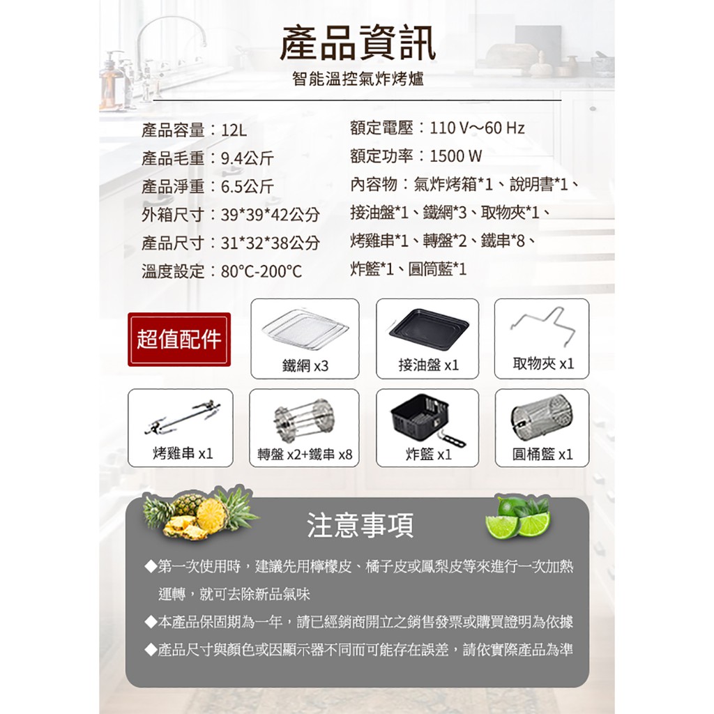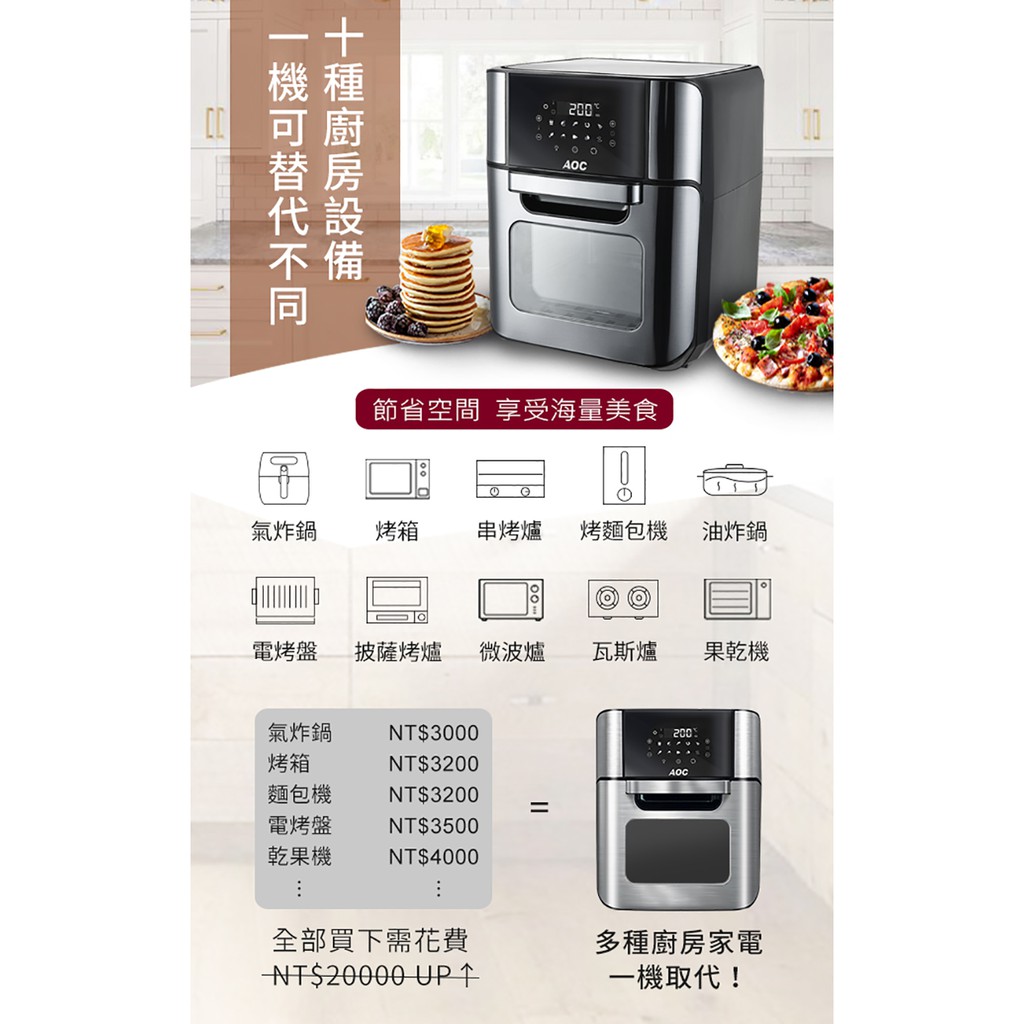美國AOC艾德蒙 12L超大微電腦液晶觸控氣炸烤箱K0062-A 現貨 廠商直送