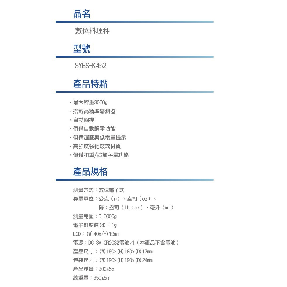 台灣三洋數位料理秤日象 SYES-K452 廠商直送