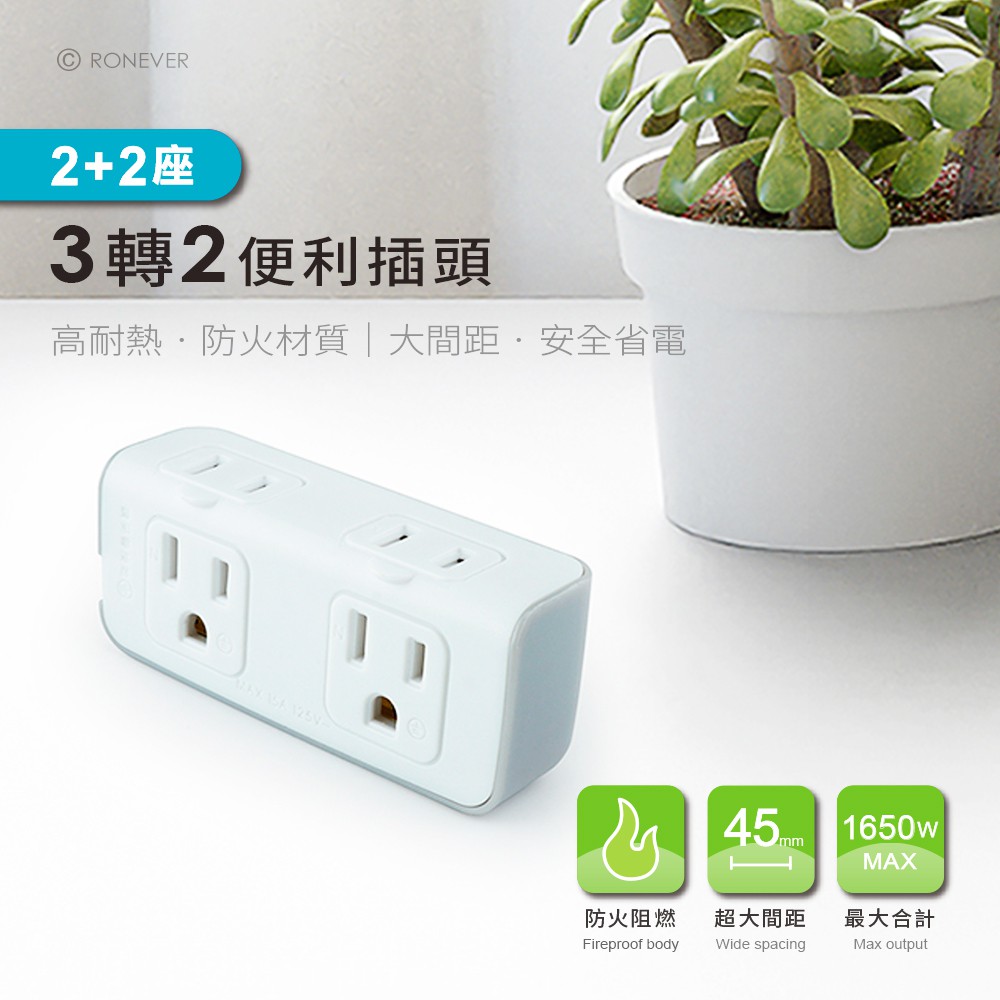 RONEVER ZPR-017 / 2+2座3轉2小壁插 現貨 蝦皮直送