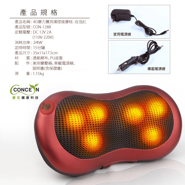 CONCERN康生 新第四代4D摩力寶貝按摩枕 CON-1288 溫熱揉捏 全新現貨 廠商直送