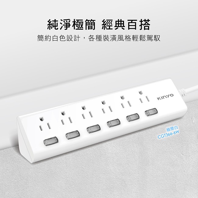 KINYO 6開6插 三角 延長線 最新安規 耐熱防火 過載保護 插座 延長線插座 插座延長線 扁插頭 廠商直送