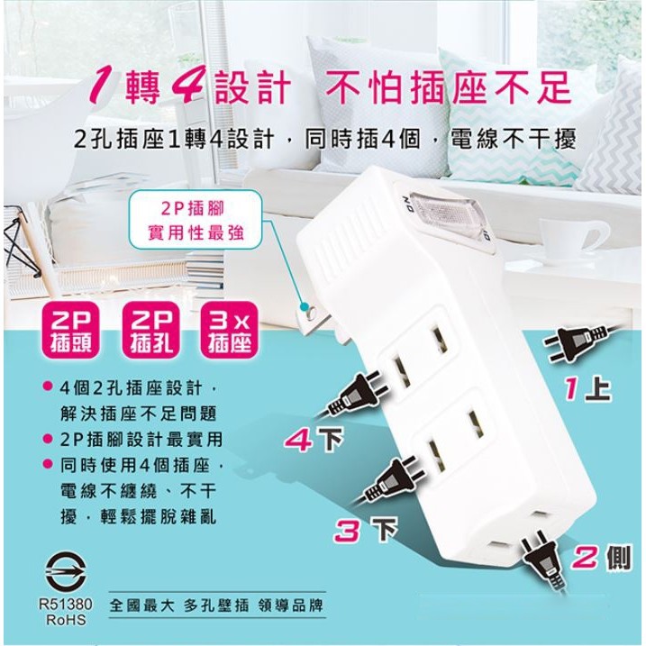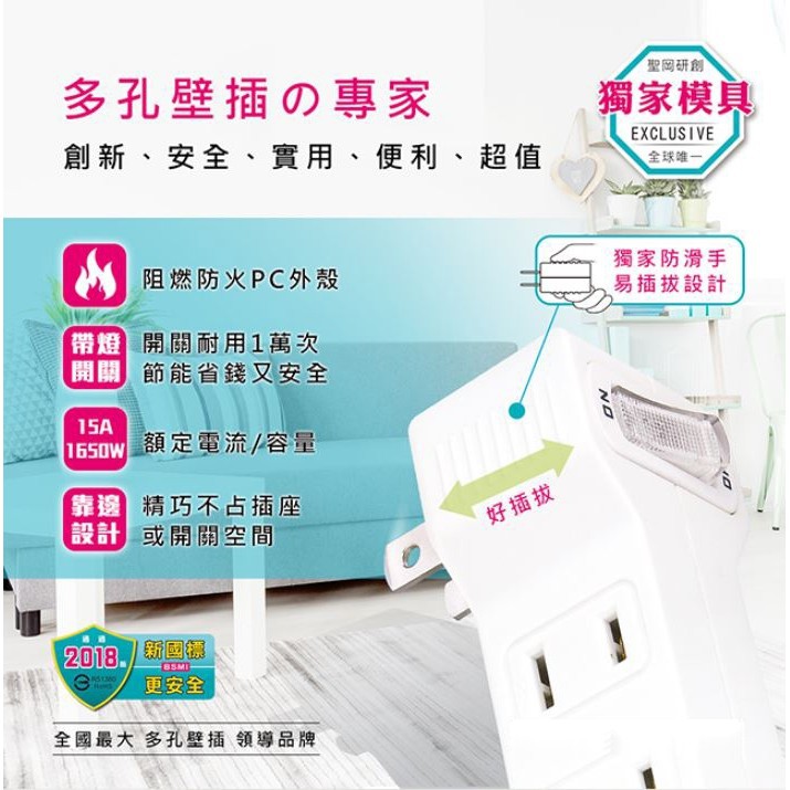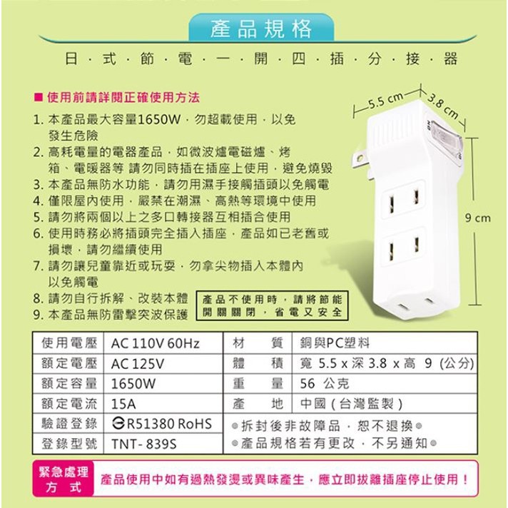 Dr.AV 聖岡科技 日式節電1開4插座 壁插 擴充插座 分接插座 轉接插頭 轉換插頭 現貨 廠商直送 宅配免運