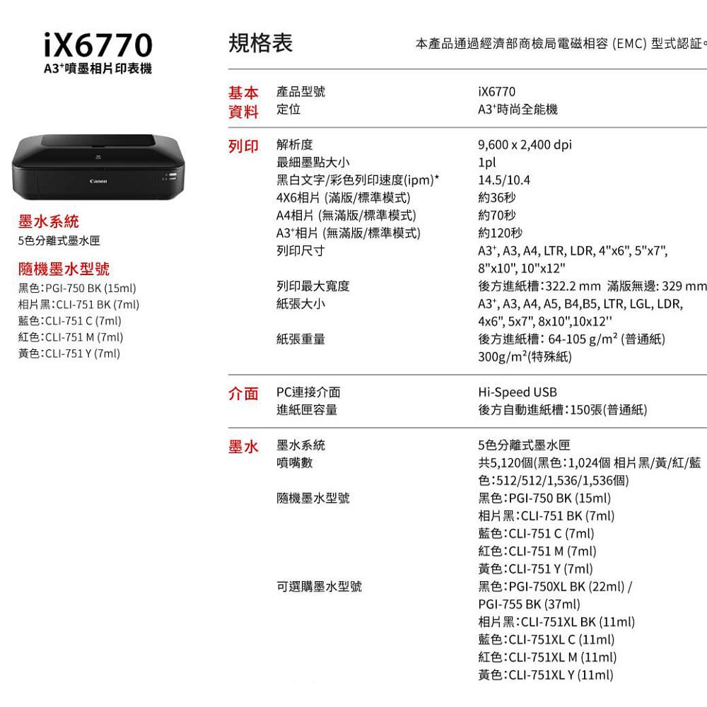 Canon PIXMA iX6770 A3+噴墨相片印表機 廠商直送