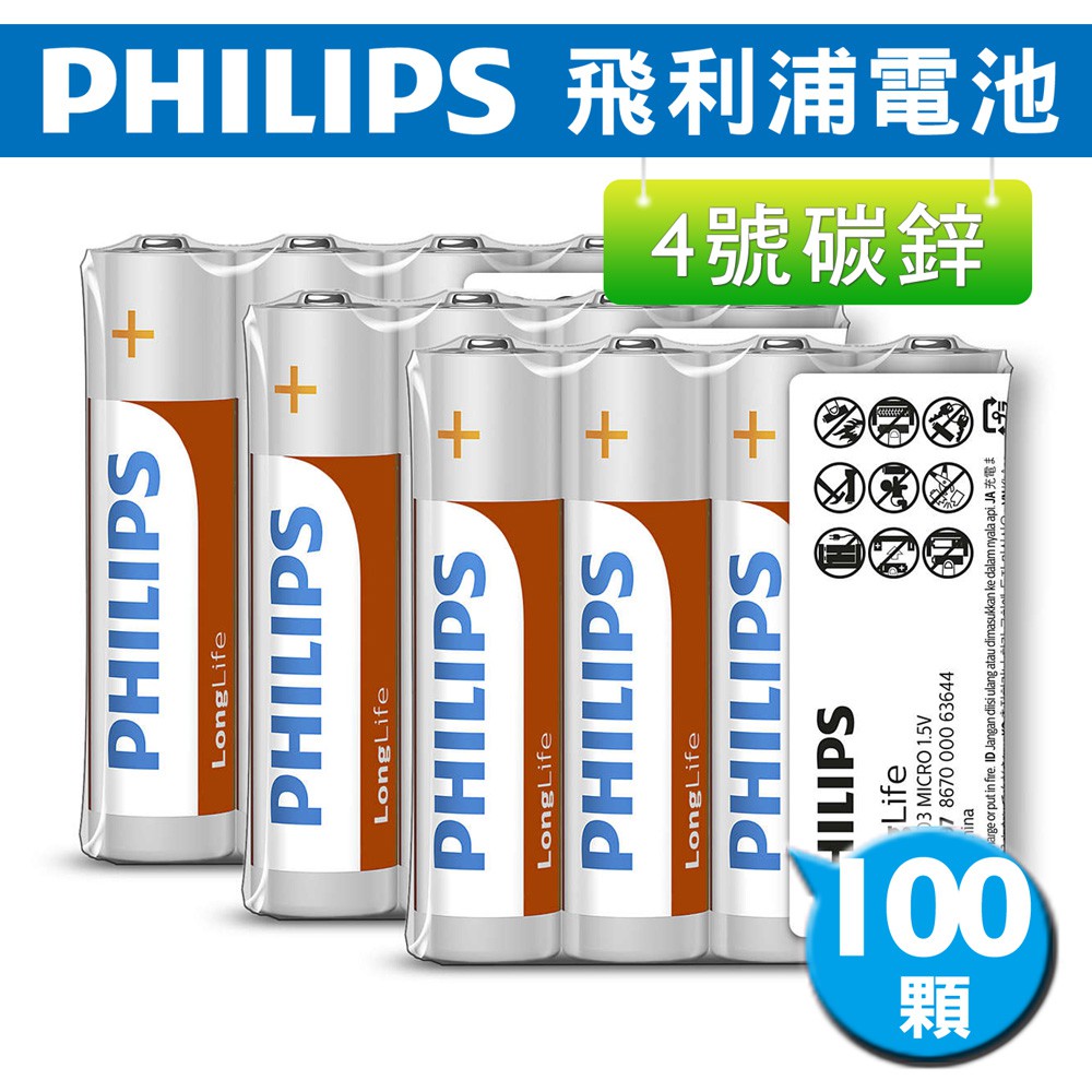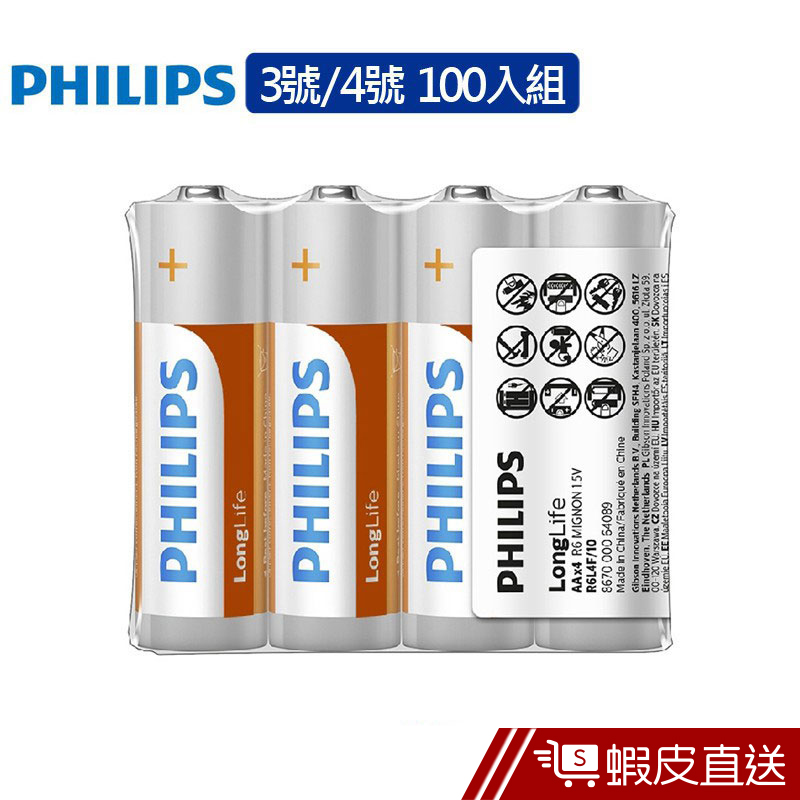 Philips 飛利浦 碳鋅3號4號電池 (熱縮) 100入 現貨 蝦皮直送