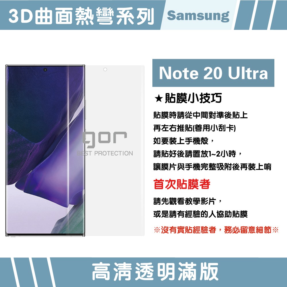 GOR保護貼 三星 Note20 Ultra 3D曲面螢幕膜 PET 軟膜保護貼 正膜 廠商直送