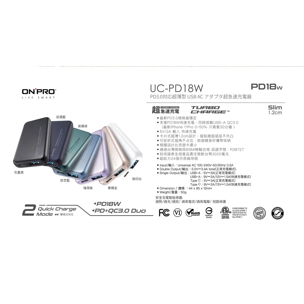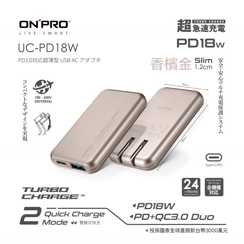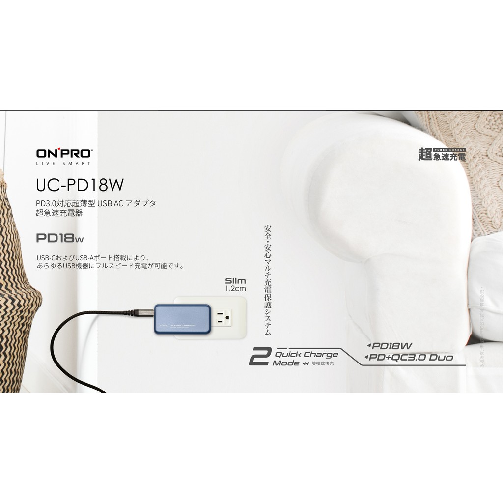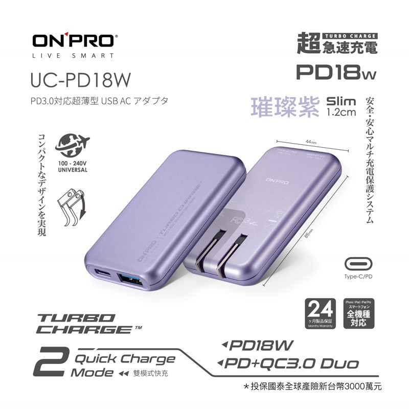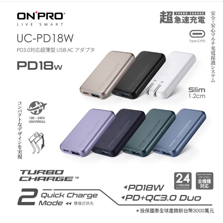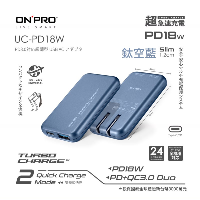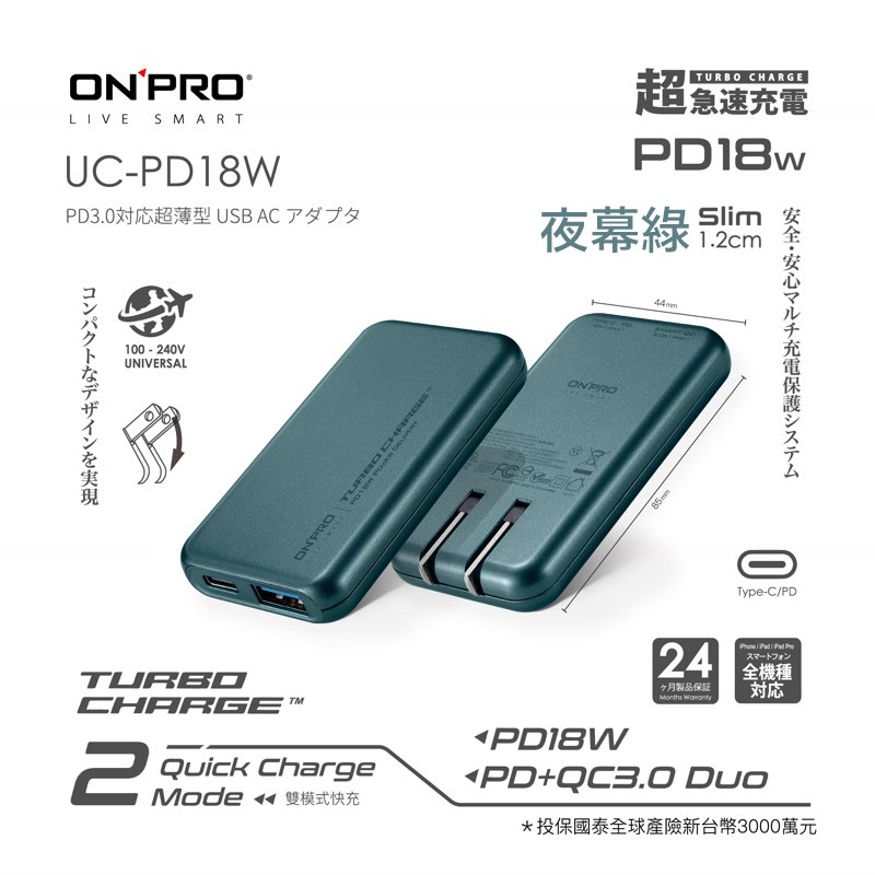 ONPRO UC-PD18W PD 18W 快速充電器 快充頭 雙孔快充超薄旅充 現貨 蝦皮直送