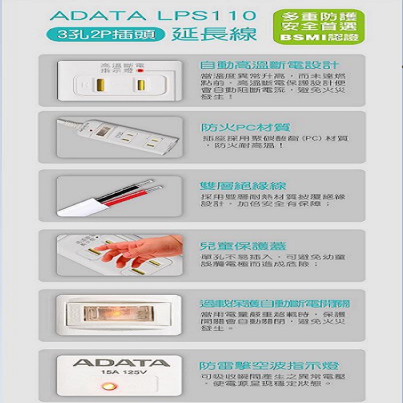 ADATA 威剛 C-03 1切3孔2P高溫斷電延長線 現貨 蝦皮直送