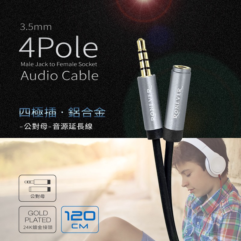 RONEVER VPC-95 / 鋁合金四極插音源延長線 公對母 現貨 蝦皮直送