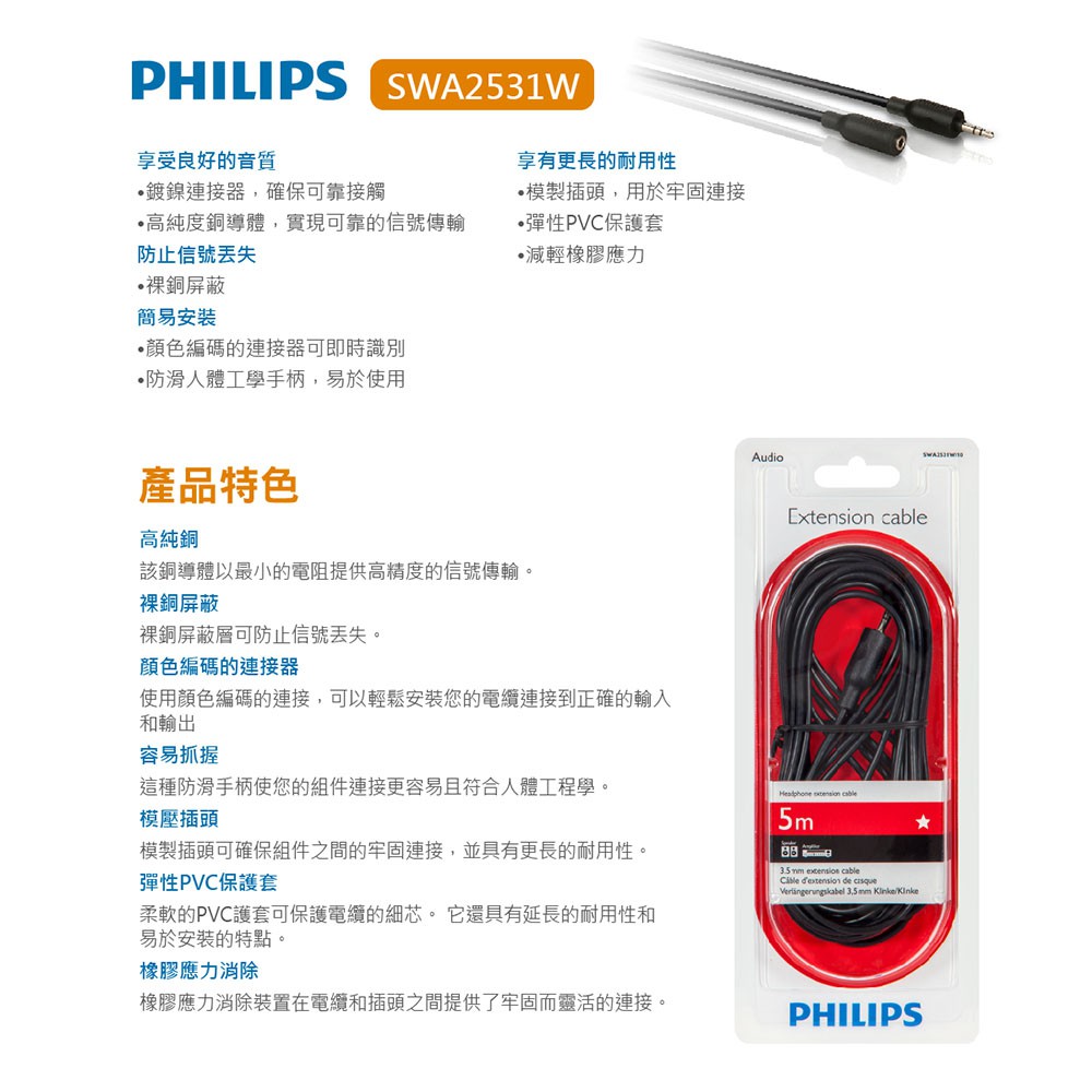PHILIPS 飛利浦 SWA2531W/10 5.0M 3.5mm音源延長線 蝦皮直送 現貨