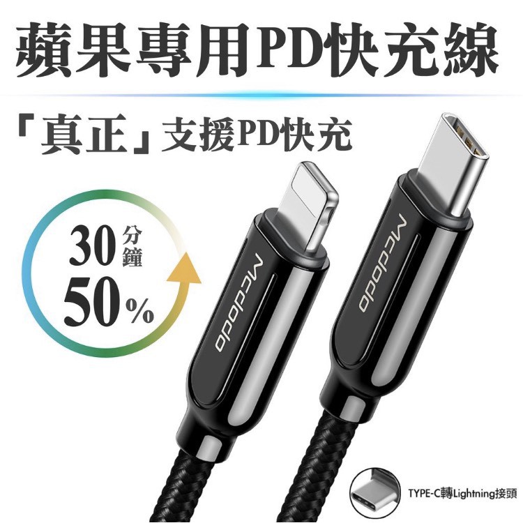 麥多多 適用 IPhone PD快充頭智能斷電USB-C To Lightning充電快充1.8M黑色傳輸線 蝦皮直送