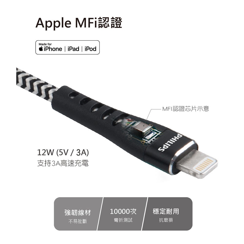PHILIPS 飛利浦MFI 認證Apple lightning 充電線DLC4511V 35CM 現貨 蝦皮直送