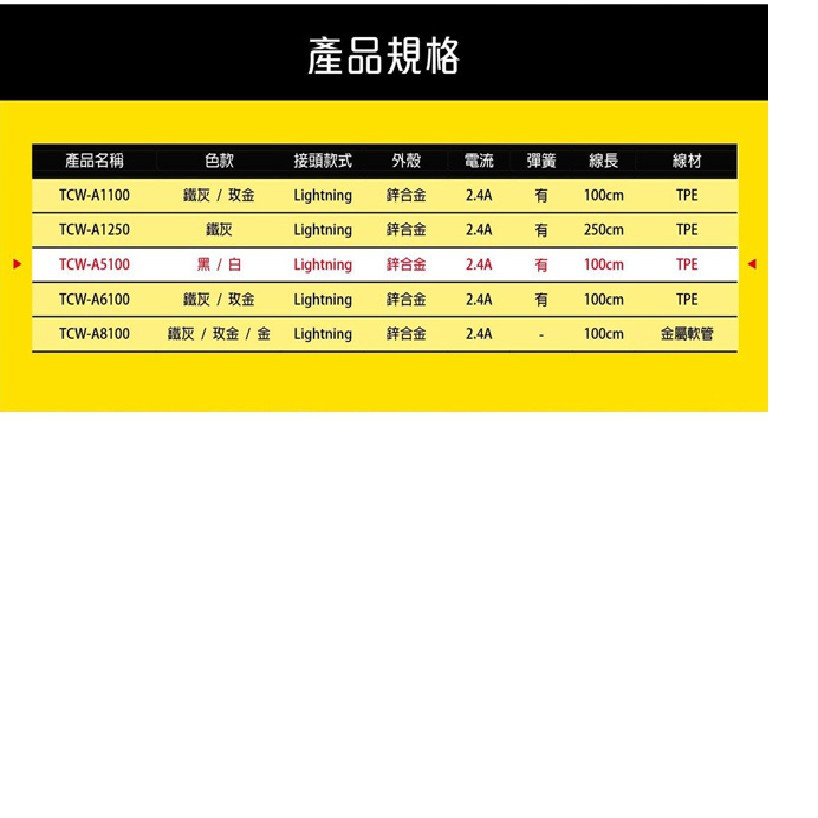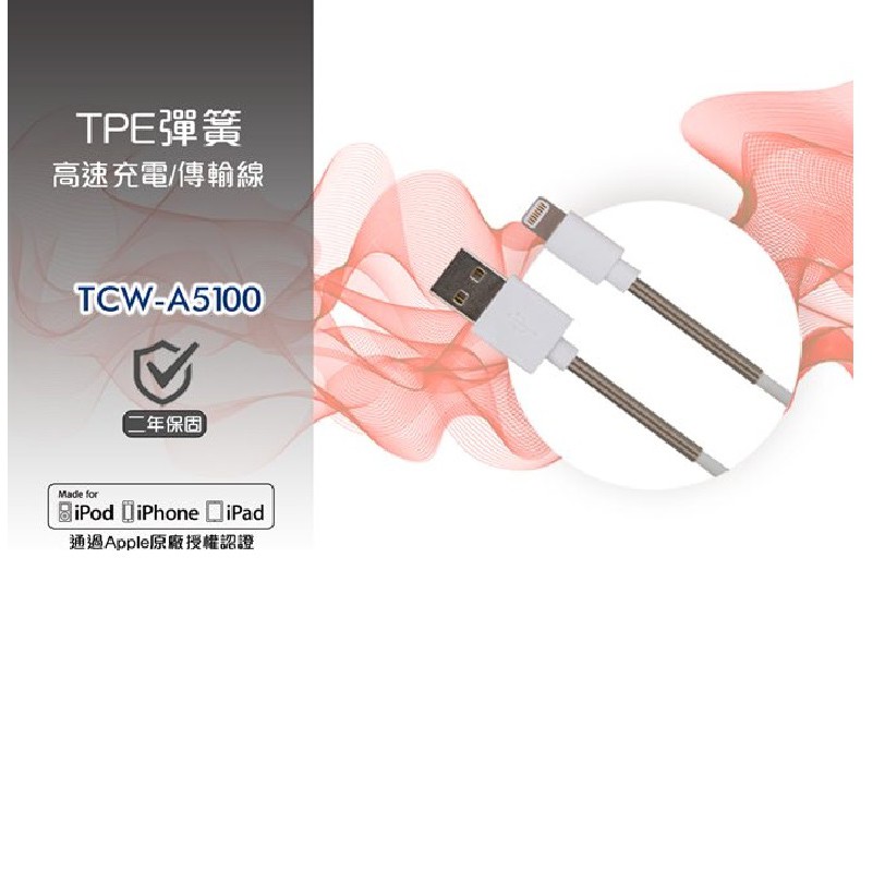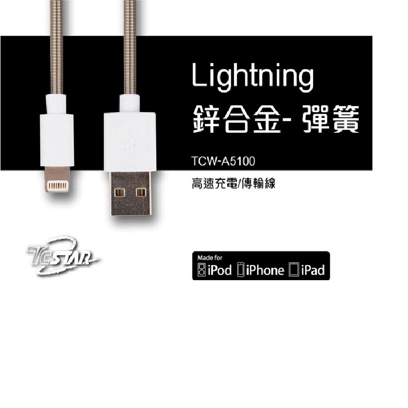 TCSTAR TCW-A5100 LIGHTNING 彈簧充電傳輸線 充電線 傳輸線 現貨 蝦皮直送