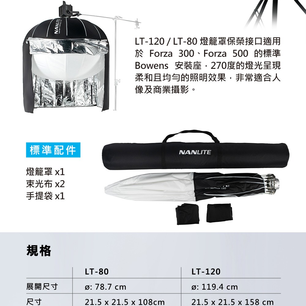 NanLite 南光 南冠 LT-120 燈籠 柔光箱 120cm 保榮卡口 / Forza 適用 公司貨 廠商直送