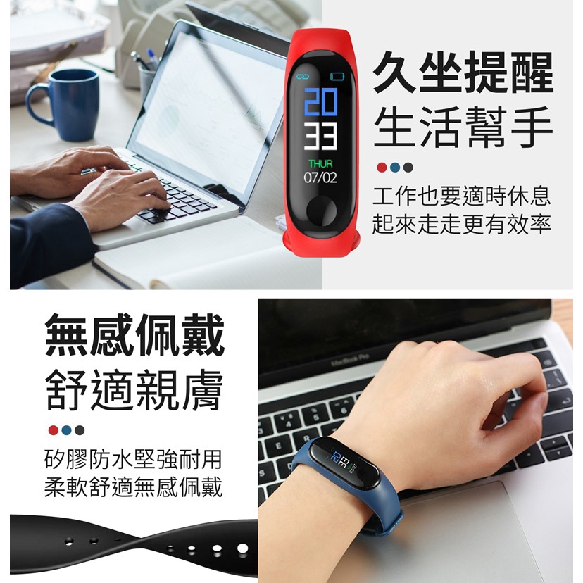 M3智能運動手環 送保護貼 多功能運動手環 智能手環 運動手錶 智能手錶 電子手環 智能手表 心率監測M3手環 蝦皮直送