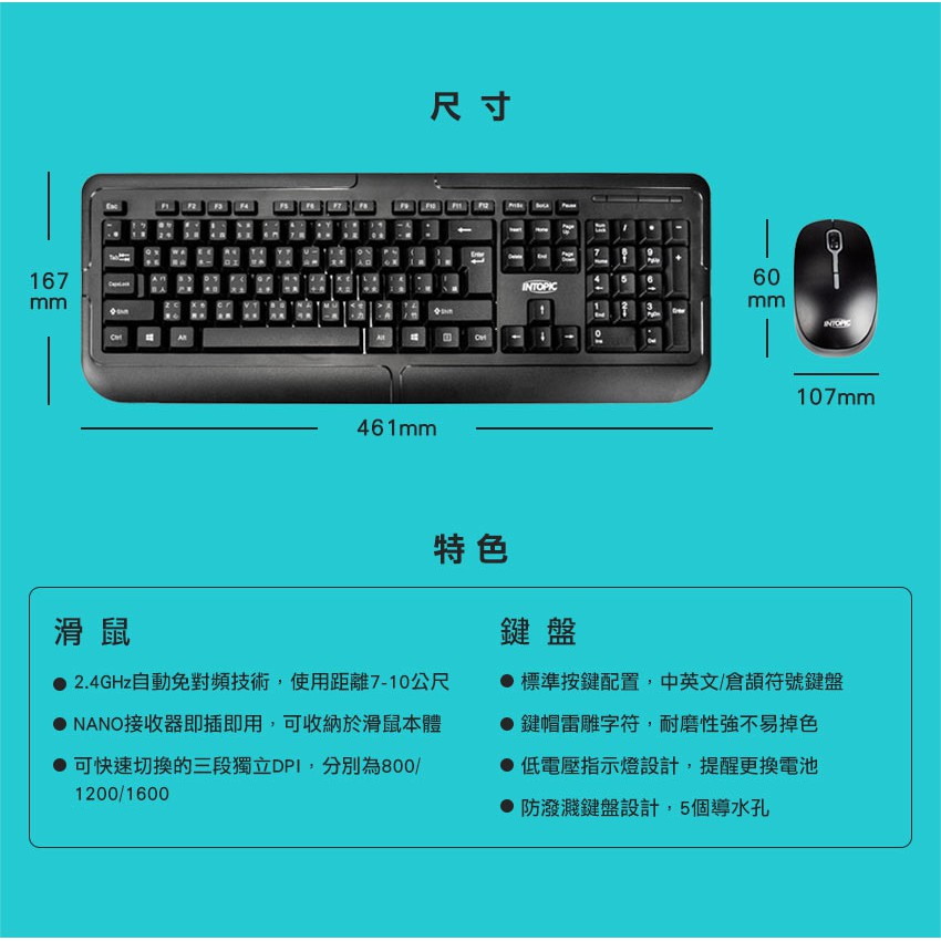 INTOPIC 2.4GHz無線鍵盤滑鼠組合包(KCW939) 現貨 廠商直送