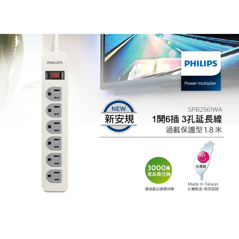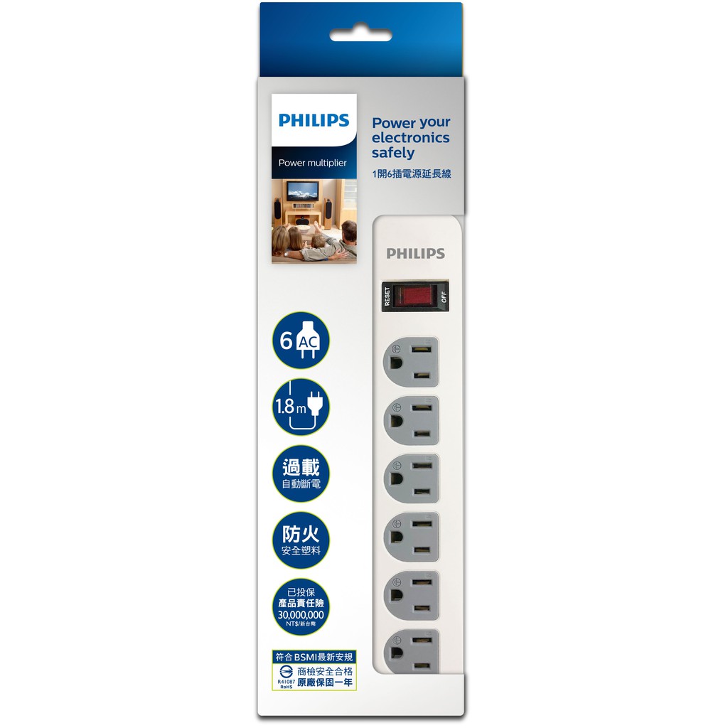 Philips 飛利浦 1開6插電腦延長線 現貨 蝦皮直送