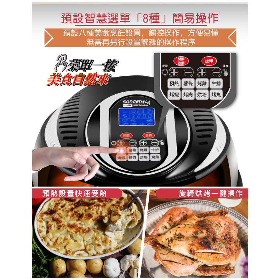 SONGEN 松井12L可旋轉籠液晶觸控氣炸鍋 SG-1000DT-B 附贈烹飪炊具8件組及美食烹飪食譜一本 廠商直送
