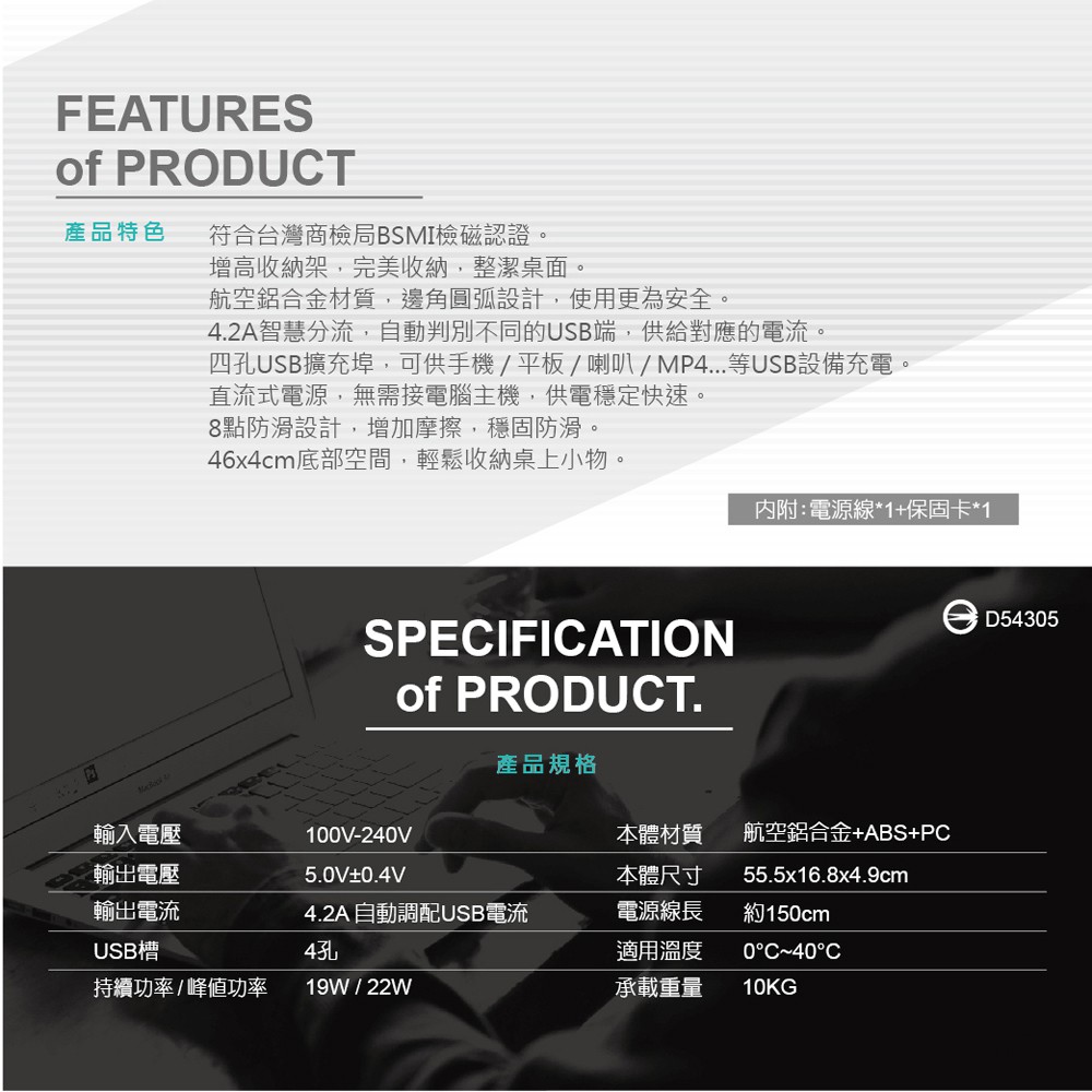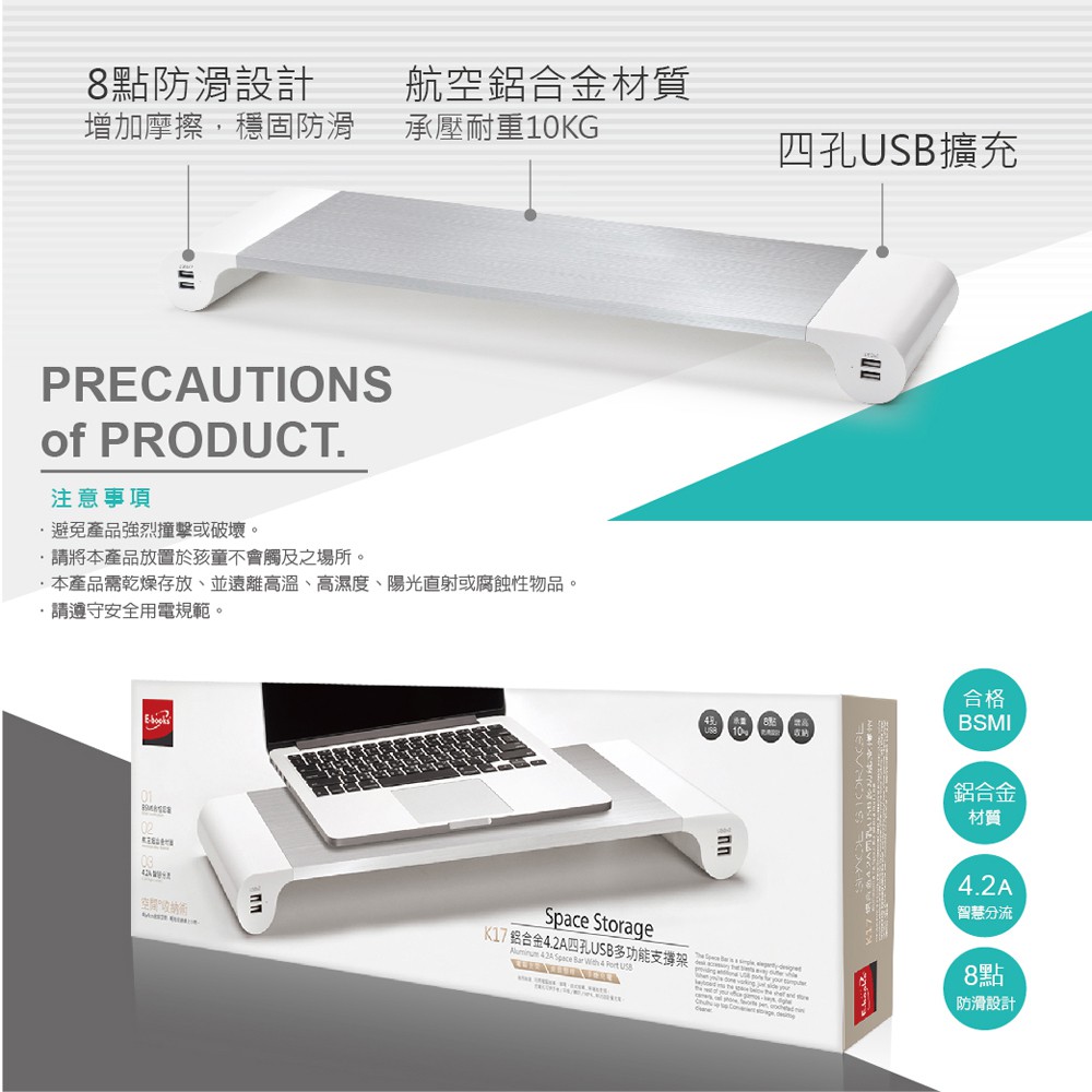 E-books K17 鋁合金4.2A四孔USB多功能辦公專用支撐架 現貨 蝦皮直送