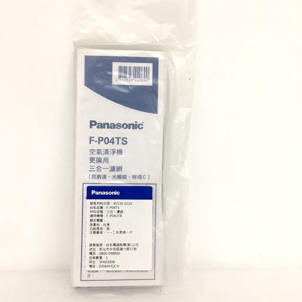 Panasonic 清淨機專用三合一清淨濾網 適用F-P04UT8 廠商直送
