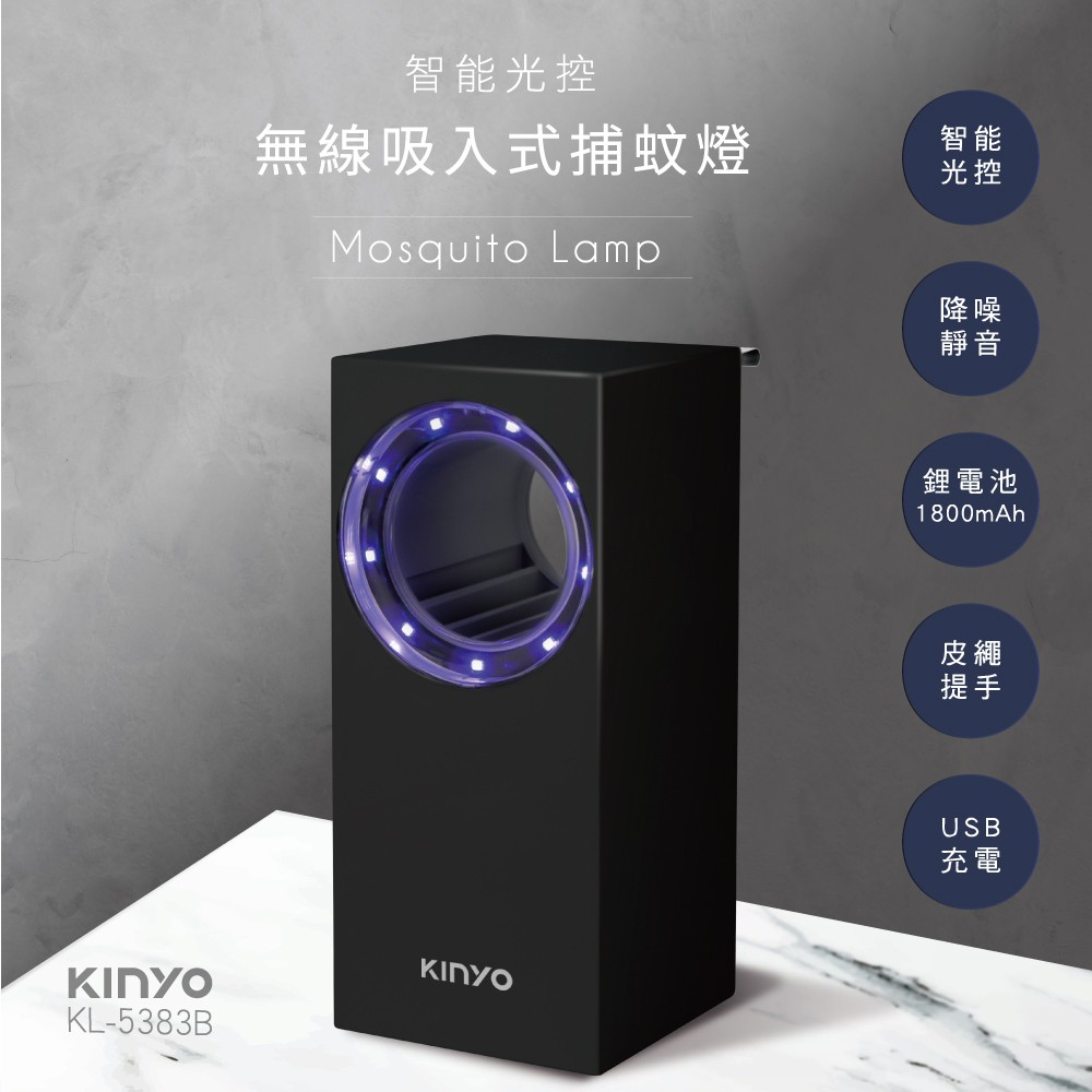 KINYO KL-5383B 光控無線吸入捕蚊燈 黑(充電式 環保 安全 安靜) 現貨 廠商直送
