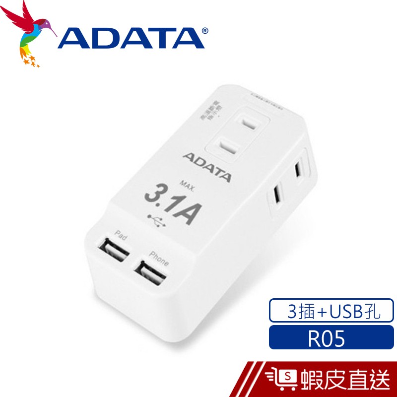 ADATA 威剛 R05 3孔2P 2USB轉接器 自動高溫斷電設計 現貨 蝦皮直送