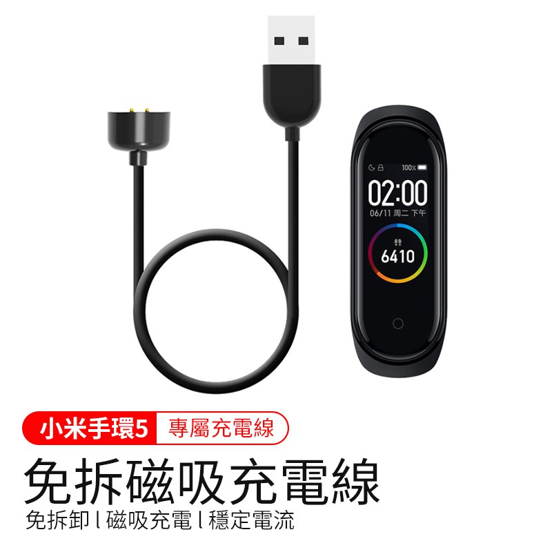 小米手環5 官方同款充電線 磁吸自動吸附 USB充電線充電器 充電夾子 免拆卸 小米手環適用 現貨 蝦皮直送