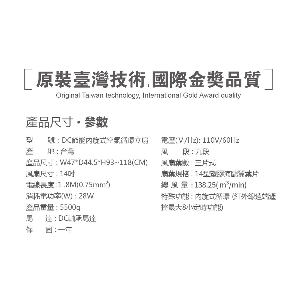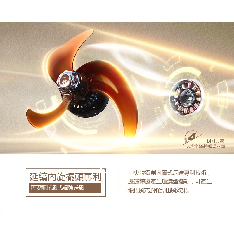 中央牌 KDS-141SR(古銅色) 14吋DC節能內旋式遙控型9段式循環立扇-厚底旗艦款-塑膠葉片 廠商直送
