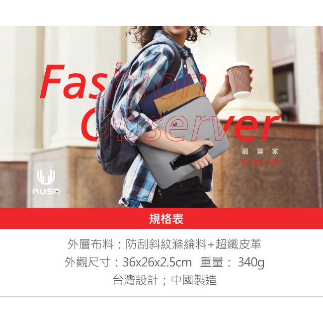 RUSA 觀察家 14/13.3吋筆電攜行袋 RS-BN-102 廠商直送