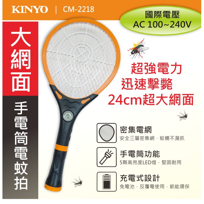 KINYO CM-2218 大網面手電筒電蚊拍 充電式 現貨 廠商直送