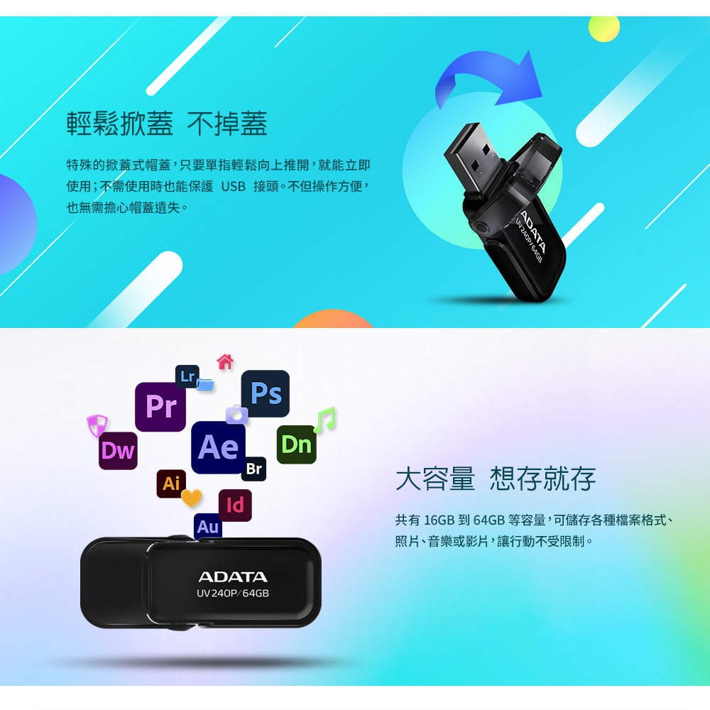 ADATA 威剛 UV240P 32GB 抗菌隨身碟 (黑色) 蝦皮直送 現貨