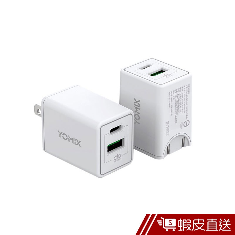 【YOMIX優迷】USB-C PD 雙孔快充18W迷你旅充/充電器 (兼容QC 3.0) 蝦皮直送