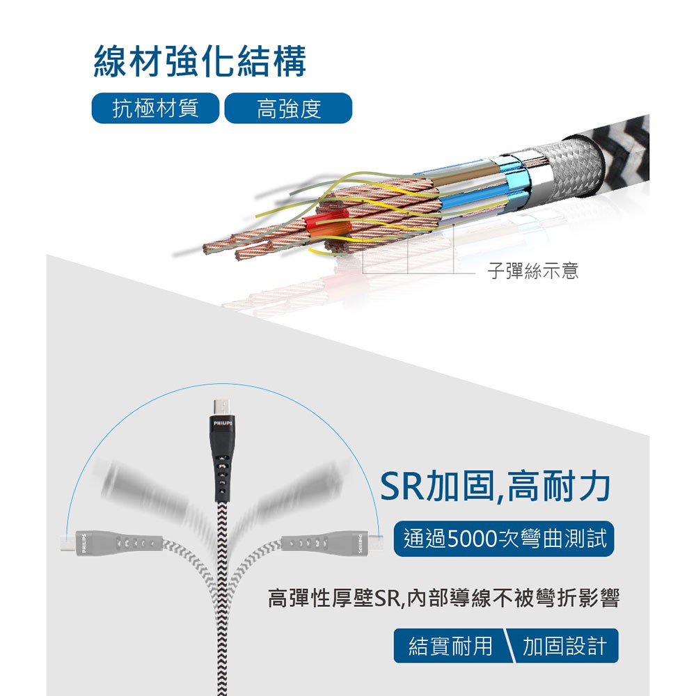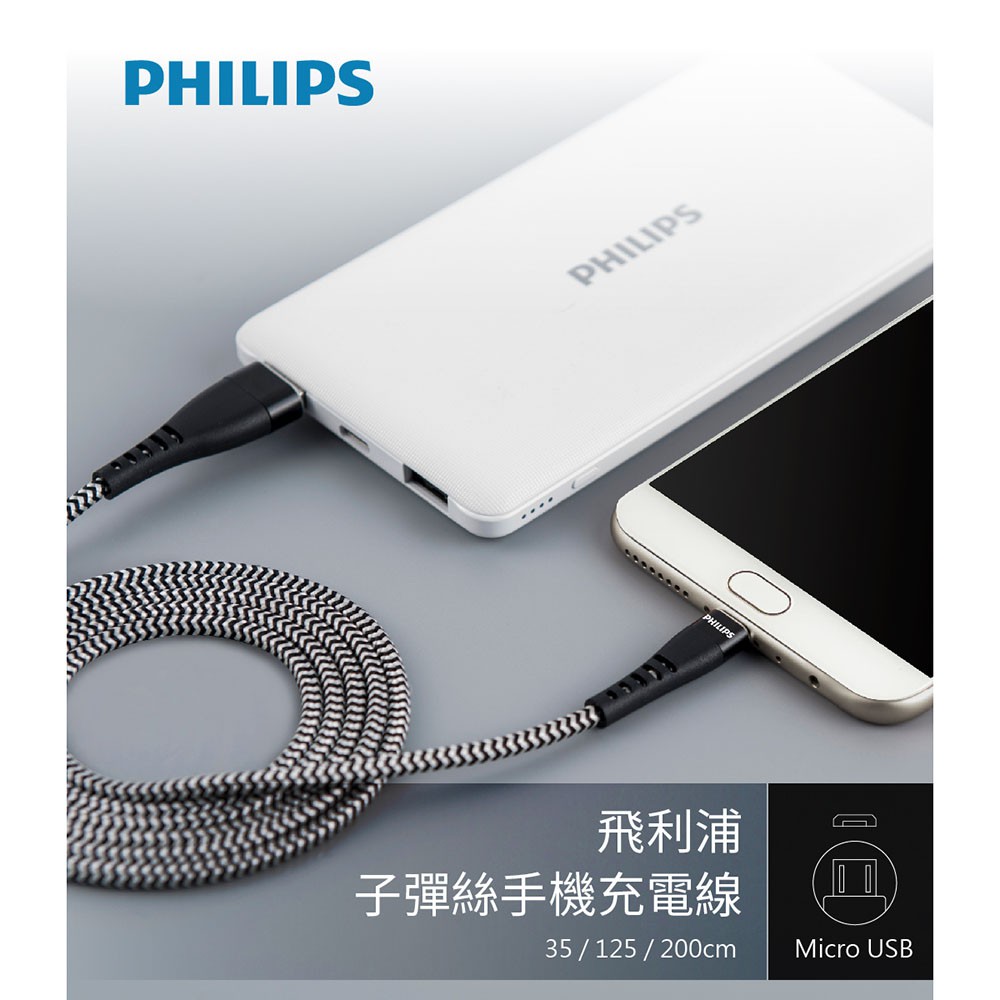 PHILIPS 飛利浦 DLC4545U 防彈絲125cm Micro USB手機充電線 充電傳輸線 蝦皮直送 現貨