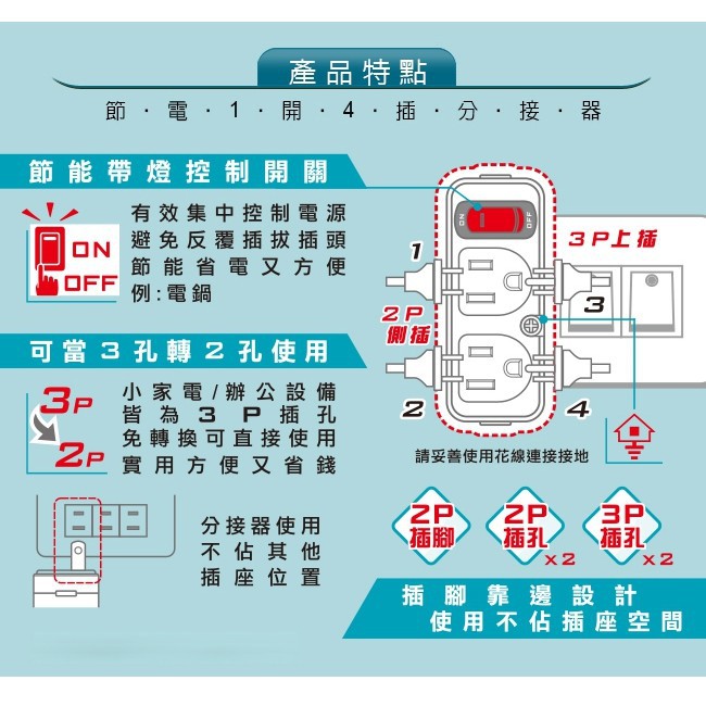 Dr.AV 聖岡科技 節電1開4插分接器 插座 壁插 擴充插座 分接插座 轉接插頭 轉換插頭 廠商直送現貨 宅配免運