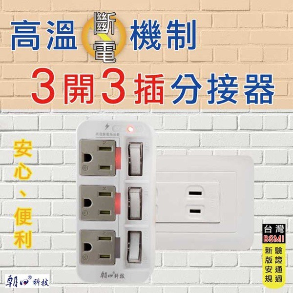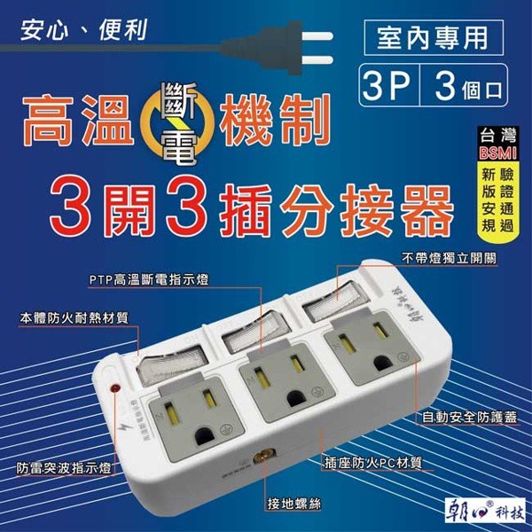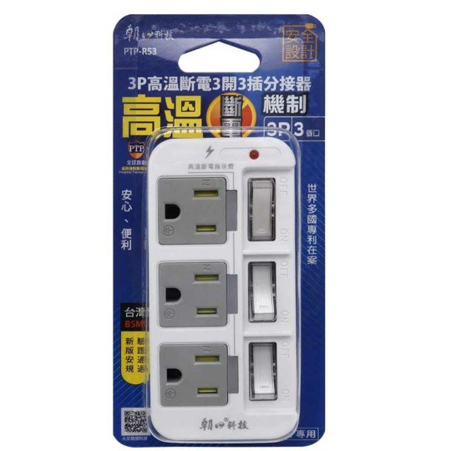 朝日科技 3P高溫斷電3開3插分接器(PTP-R53) 現貨 廠商直送 宅配免運