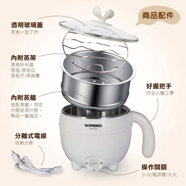 WONDER旺德 雙層防燙不鏽鋼蒸籠美食鍋 WH-K34 現貨 廠商直送