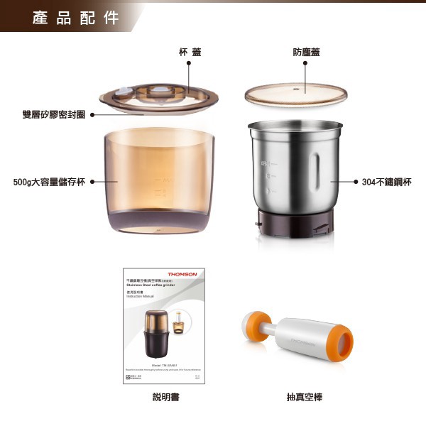 THOMSON 不鏽鋼磨豆機(真空保鮮) TM-SAN01 現貨 廠商直送