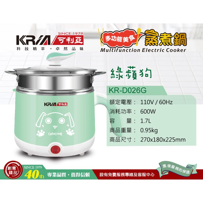 KRIA 可利亞 多功能美食蒸煮鍋/電火鍋/蒸鍋(KR-D026G) 廠商直送