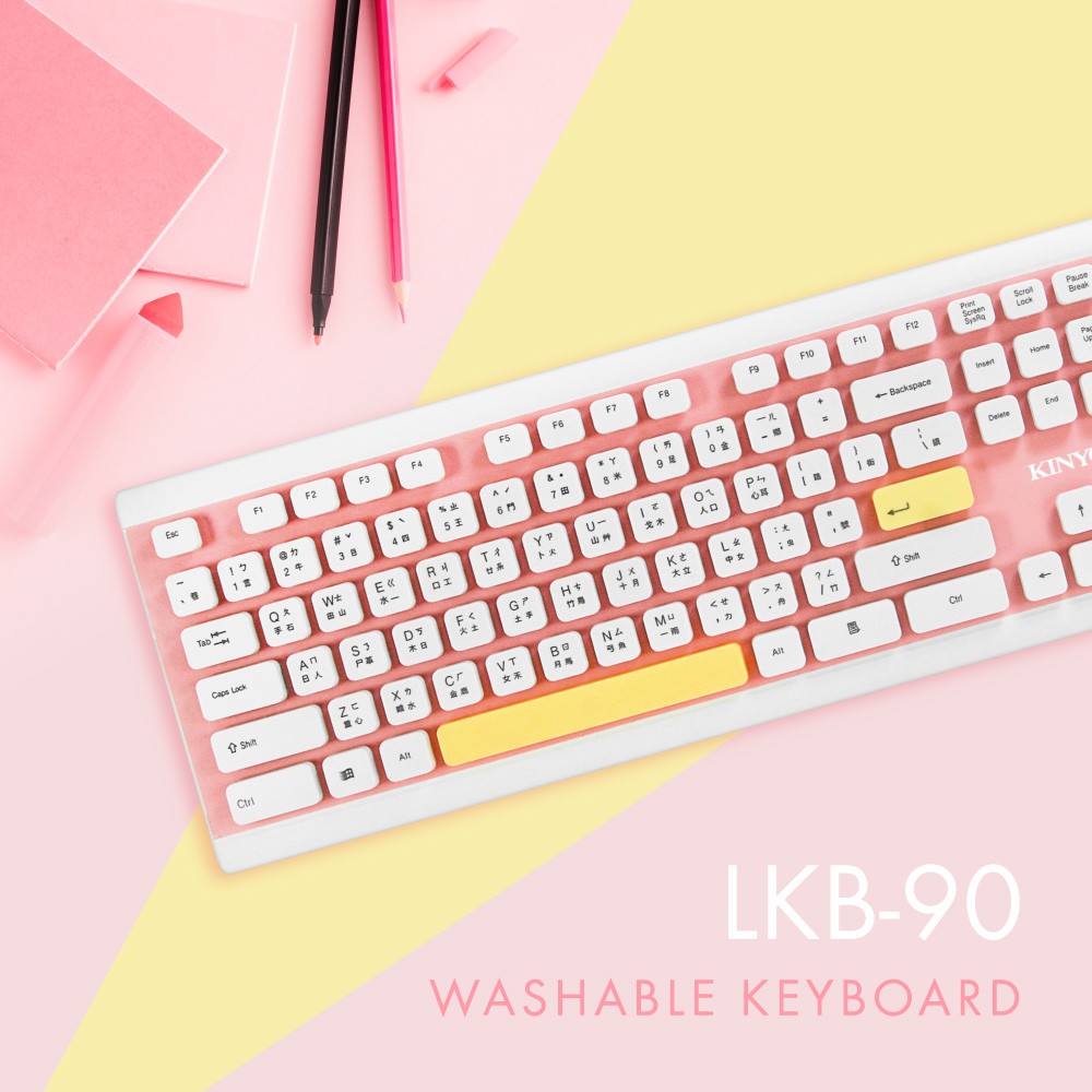 KINYO 超薄鍵盤 巧克力鍵盤 辦公用 可水洗 USB彩色防水鍵盤 LKB-90 廠商直送 免運