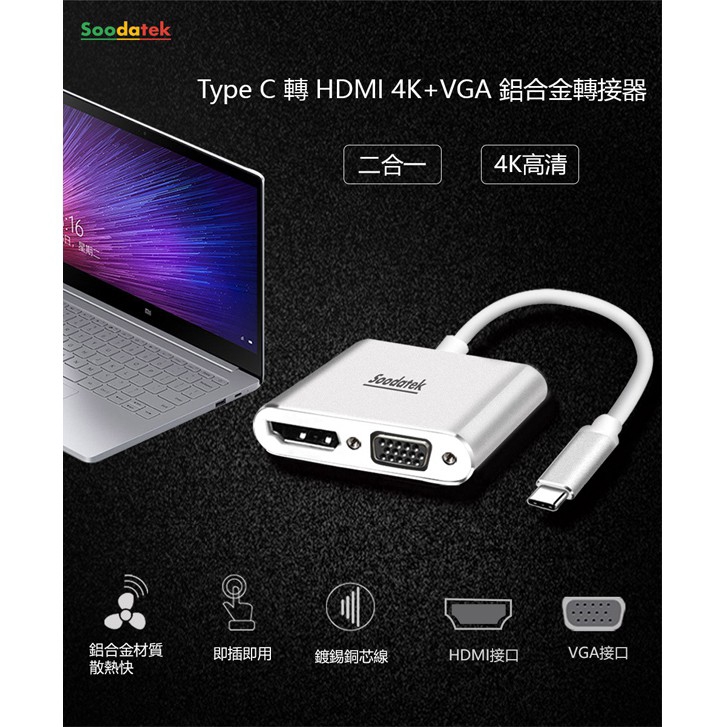 Soodatek TypeC to HDMI+VGA轉接器 現貨 蝦皮直送