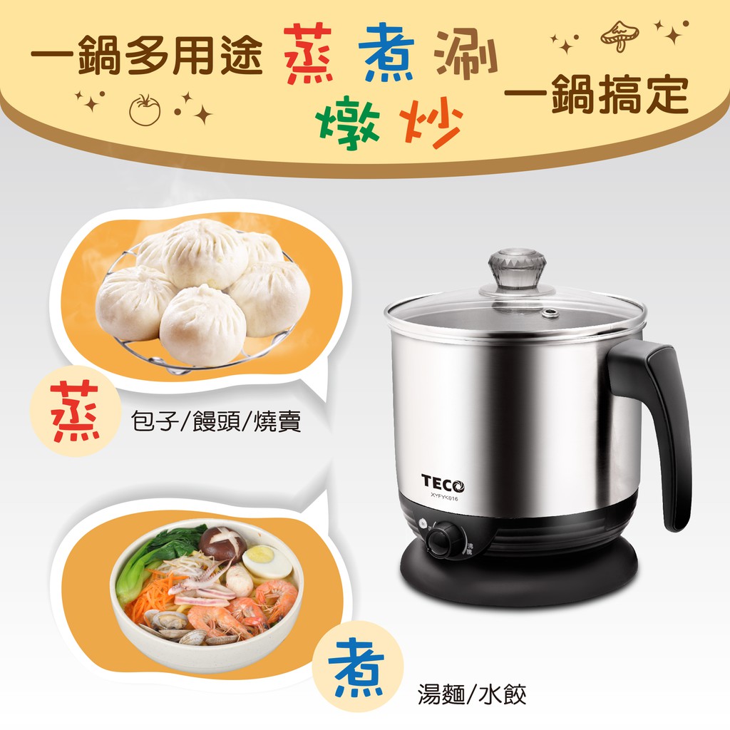 TECO東元 1.6L多功能不鏽鋼美食鍋 XYFYK016【福利品九成新】廠商直送 現貨