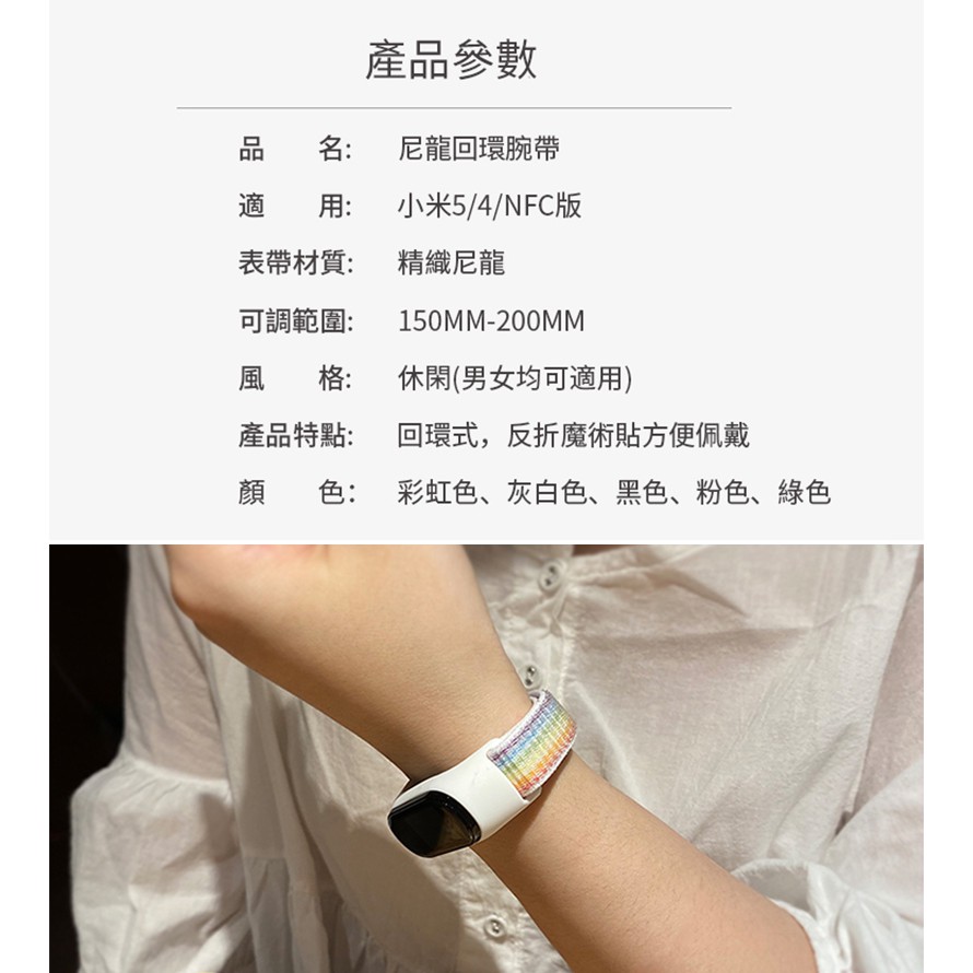 ANTIAN 小米手環6/5 尼龍回環矽膠手腕帶 運動腕帶 時尚舒適透氣替換錶帶 小米6彩虹手錶帶 贈保護貼 蝦皮直送