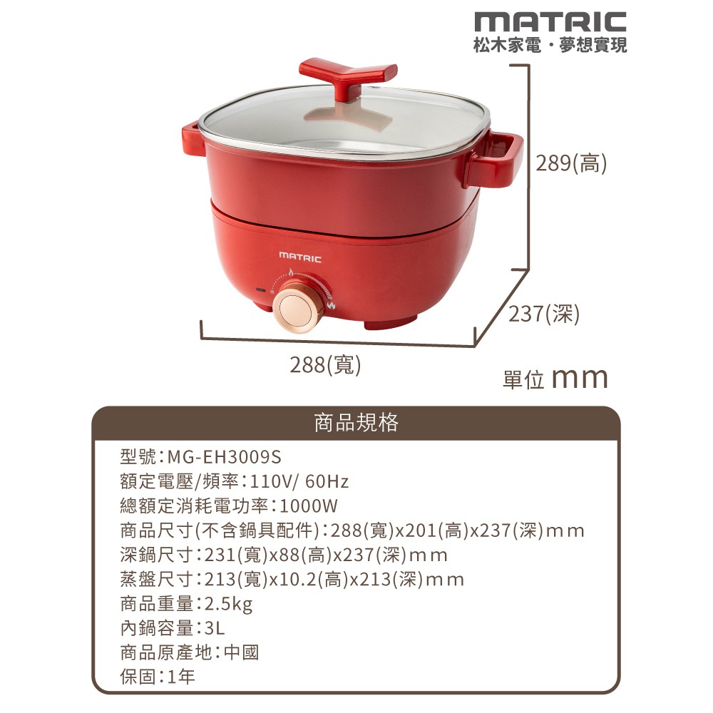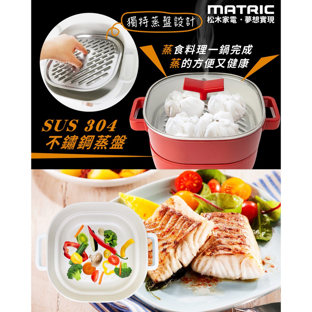 【MATRIC 松木】日本松木3L蒸鮮煎煮三用料理鍋 MG-EH3009S(附不鏽鋼蒸盤) 現貨 廠商直送