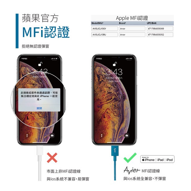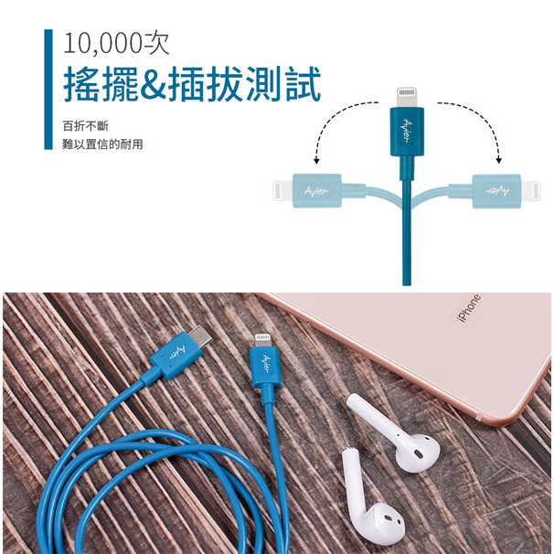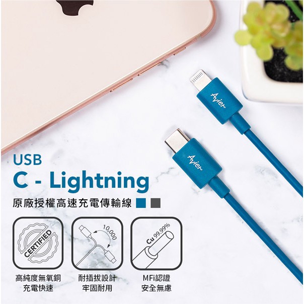 Avier MFI認證 Lightning to Type C 充電線/傳輸線 高速充電傳輸線-1M 現貨 蝦皮直送