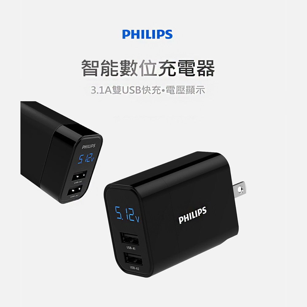 PHILIPS 飛利浦 3.1A 充電器 充電頭 旅充 DLP4320NB LED顯示 現貨 蝦皮直送