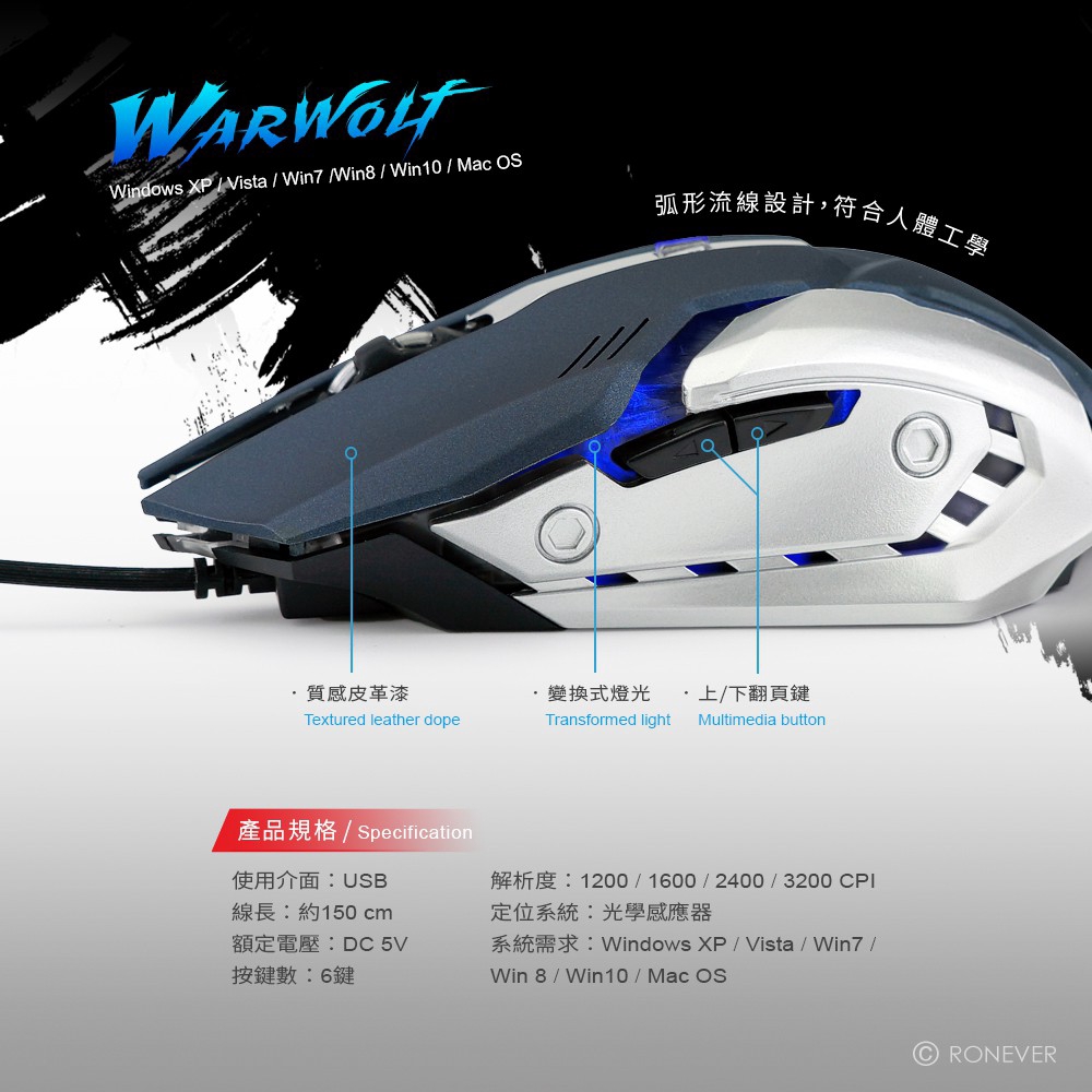 RONEVER 戰狼 電競滑鼠 遊戲滑鼠 電玩滑鼠 電腦滑鼠 內置重塊 DPI切換 SYS153 現貨 蝦皮直送