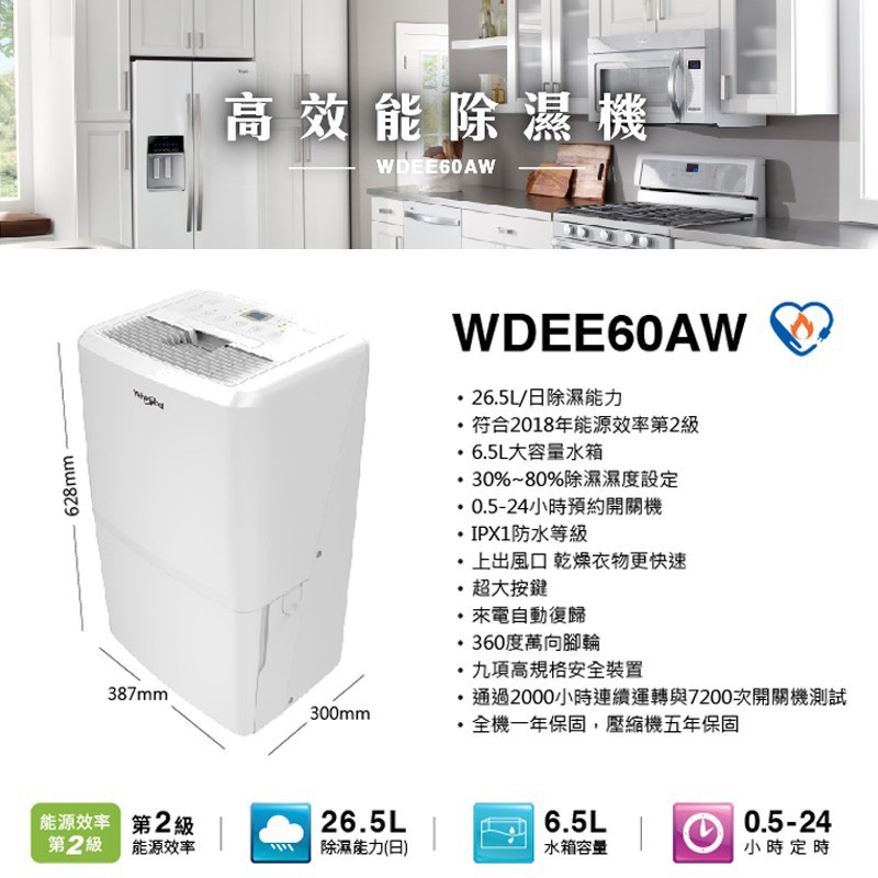 Whirlpool 惠而浦 26.5L節能除濕機 WDEE60AW 現貨 廠商直送