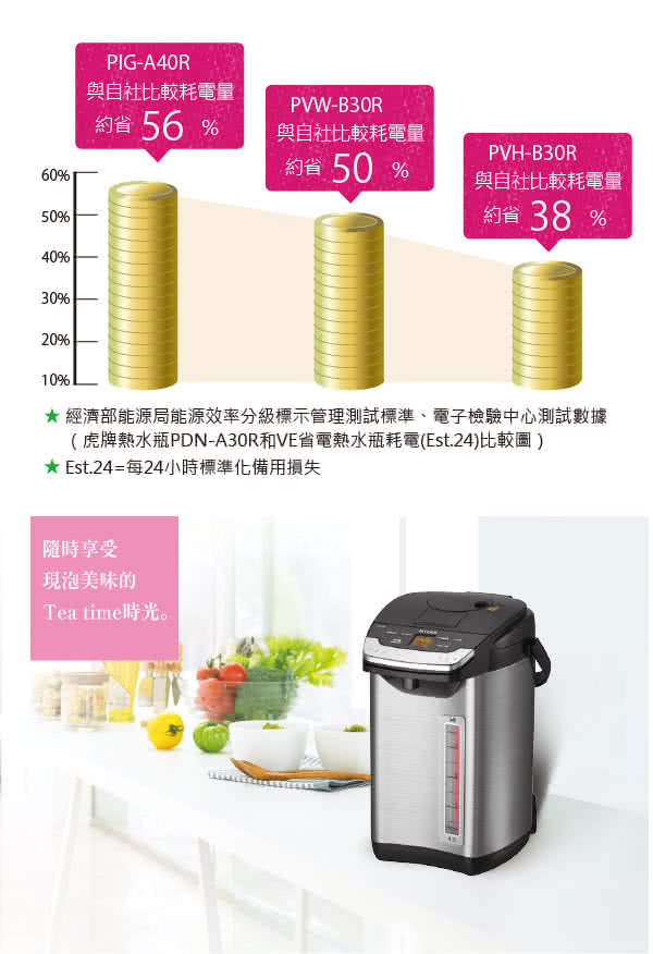 TIGER虎牌 4.0L VE節能省電真空熱水瓶 PIG-A40R 廠商直送